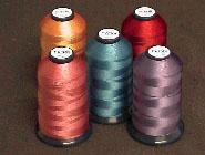 We use only 100% double polished polyester thread. Colors are vibrant, glisten and strong. Items embroidered should not be left laying wet or soaking in detergent. If bleach is needed use non-chlorine.
